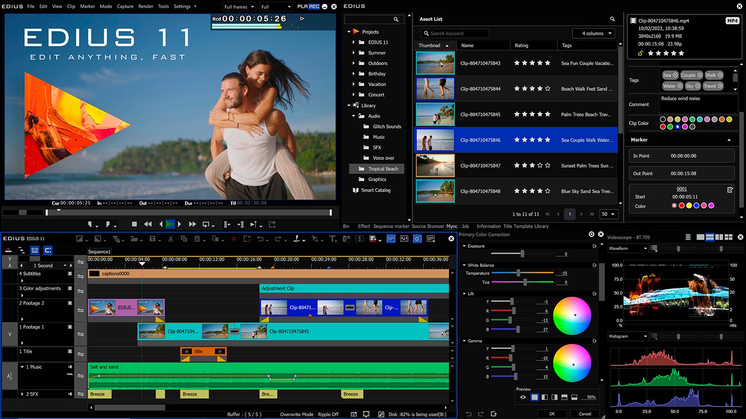 Actualización 11.00.13349 para EDIUS 11 sigue centrándose en correcciones en la ventana Bin. El nuevo EDIUS 11 presenta un código completamente rediseñado para esta sección, lo que ha provocado un aumento de los errores; la nueva actualización corrige la mayoría de los errores notificados por los usuarios, y para enero también está prevista otra versión que traerá nuevas funciones (ibídem). La lista completa de novedades se encuentra aquí; la nueva versión se puede descargar enedius.net/edius_download.html.