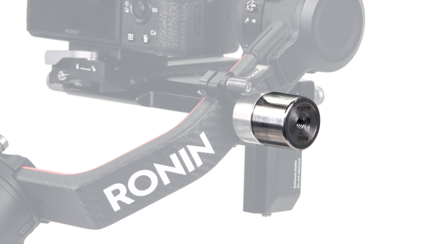 Este contrapeso de 100 g se puede utilizar junto con la abrazadera de contrapeso del brazo lateral y/o el adaptador de contrapeso para la placa base de fijación rápida, con el fin de añadir peso adicional cuando sea necesario para equilibrar el conjunto de la cámara en el gimbal.