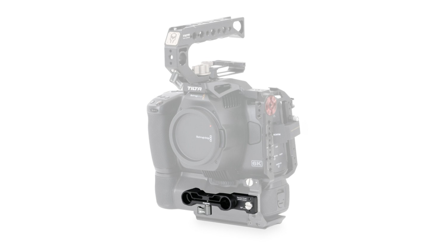 Este soporte para varillas de 15 mm se puede instalar para sujetar varillas de 15 mm cuando se utiliza una empuñadura de batería en la configuración Half Cage mediante una placa inferior alargada.