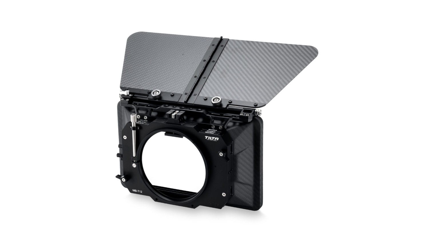Esta caja mate de fibra de carbono, con unas dimensiones de 4 × 5,65, está diseñada para acoplarse directamente a objetivos de tamaño estándar y para ser lo más ligera y discreta posible.