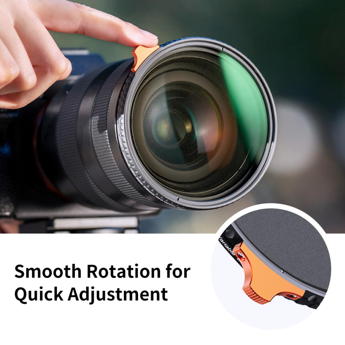 * 【Sin marcas en forma de «X» en las imágenes】Sin marcas en forma de «X» en las imágenes: K&F utiliza tecnología de bloqueo automático del marco para evitar este problema habitual en los objetivos gran angulares y los filtros ND variables. El marco antideslizante CNC facilita la instalación y extracción del filtro.