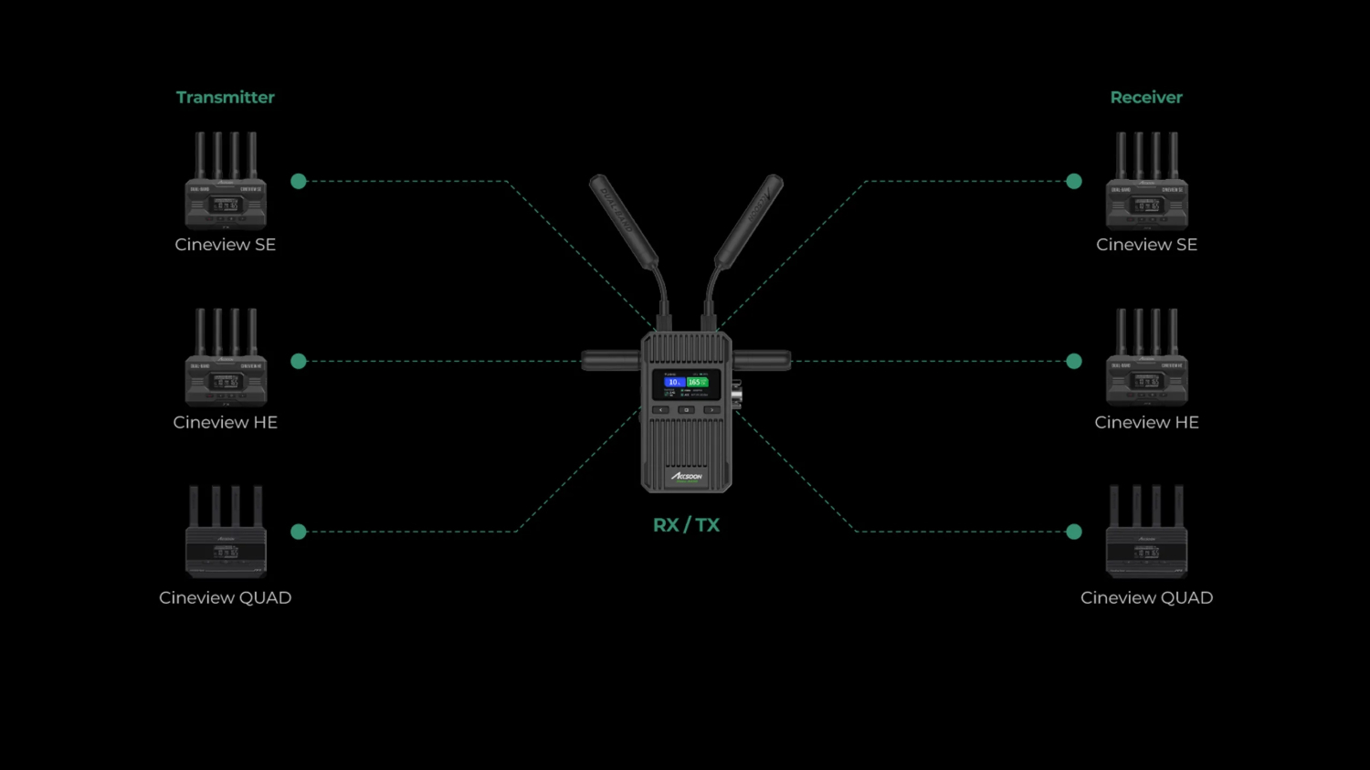 CineView 2 es la última incorporación a la reconocida familia de productos CineView de Accsoon. CineView 2 incorpora la tecnología estadounidense patentada de doble banda Accsoon 2,4 GHz + 5 GHz y cuenta con un diseño de antena totalmente nuevo, lo que le permite transmitir de forma fluida señales de vídeo y audio con una resolución de 1080p a 60 fotogramas por segundo en un alcance de 450 m, manteniendo una latencia impresionantemente baja, inferior a 50 ms.