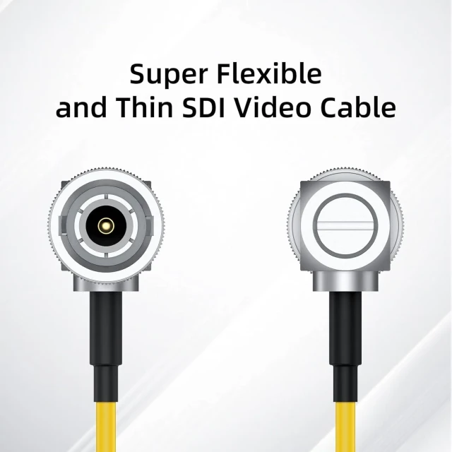El Accsoon ACC-XC-BNC-SDI-80-YELLOW es un cable SDI de alta calidad con conectores en ángulo recto, diseñado para una transmisión de vídeo estable y sin interferencias, ideal para su uso con los sistemas Accsoon CineView SE, Quad y SeeMo Pro.