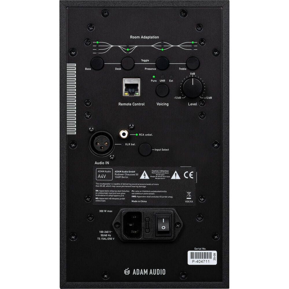 Los profesionales del audio que necesiten un monitor de campo cercano de alta calidad quedarán encantados con el Adam Professional Audio A4V, un altavoz de estudio profesional de 4" y 2 vías que ofrece un sonido rico, espacioso y envolvente, ideal para estudios de pequeño tamaño, distancias de escucha cortas y configuraciones multisistema envolventes.