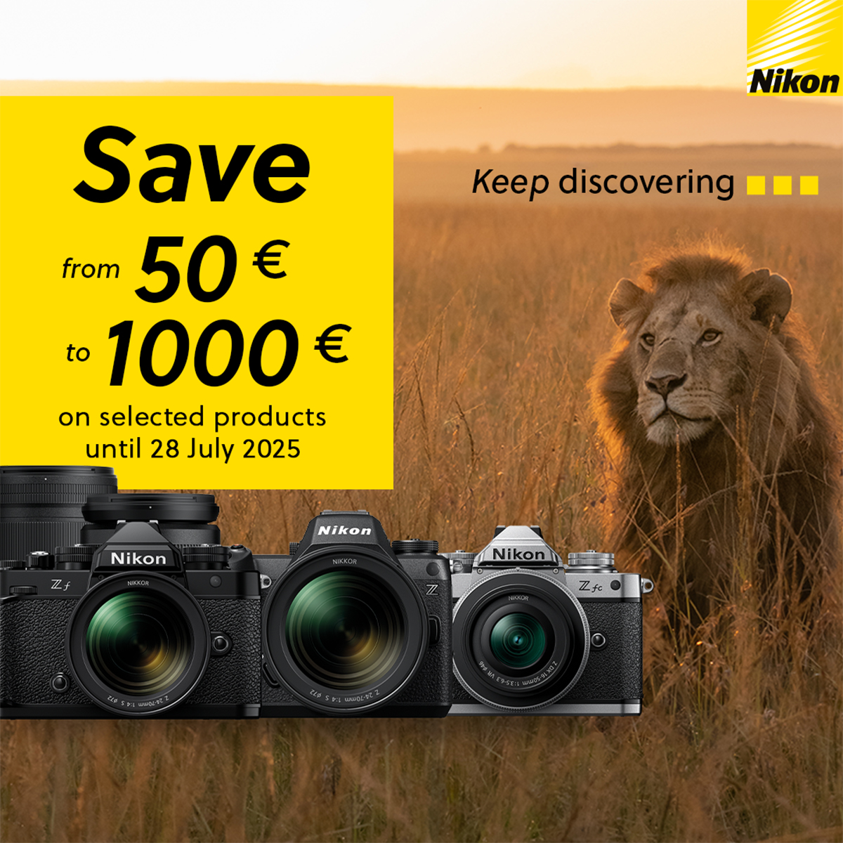 ¡Descubre la exclusiva promoción de verano deNikon! Del 2 de mayo al 28 de julio de 2025, podrás adquirir productos de primera calidad de la marca Nikon con descuentos de hasta 25 000 CZK. La promoción se aplica no solo a modelos seleccionados de cámaras sin espejo, incluidos los cuerpos profesionalesNikon Z8 y Nikon Z9, sino también a una amplia gama de objetivos NIKKOR Z de alta gama. Tanto si eres un fotógrafo profesional, un aficionado o un creador de vídeos, ahora tienes una gran oportunidad de ampliar tu equipo a un precio muy ventajoso. ¡No te pierdas esta oferta por tiempo limitado!