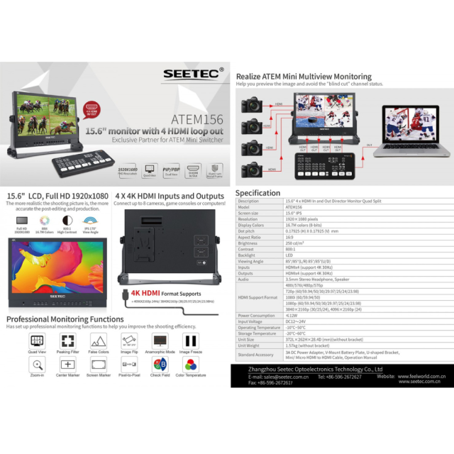 Monitor multivisión con E/S HDMI pasante, ideal para mesas de mezcla HDMI, como la ATEM Mini. ¡Función Quad View para visualizar las cuatro entradas!