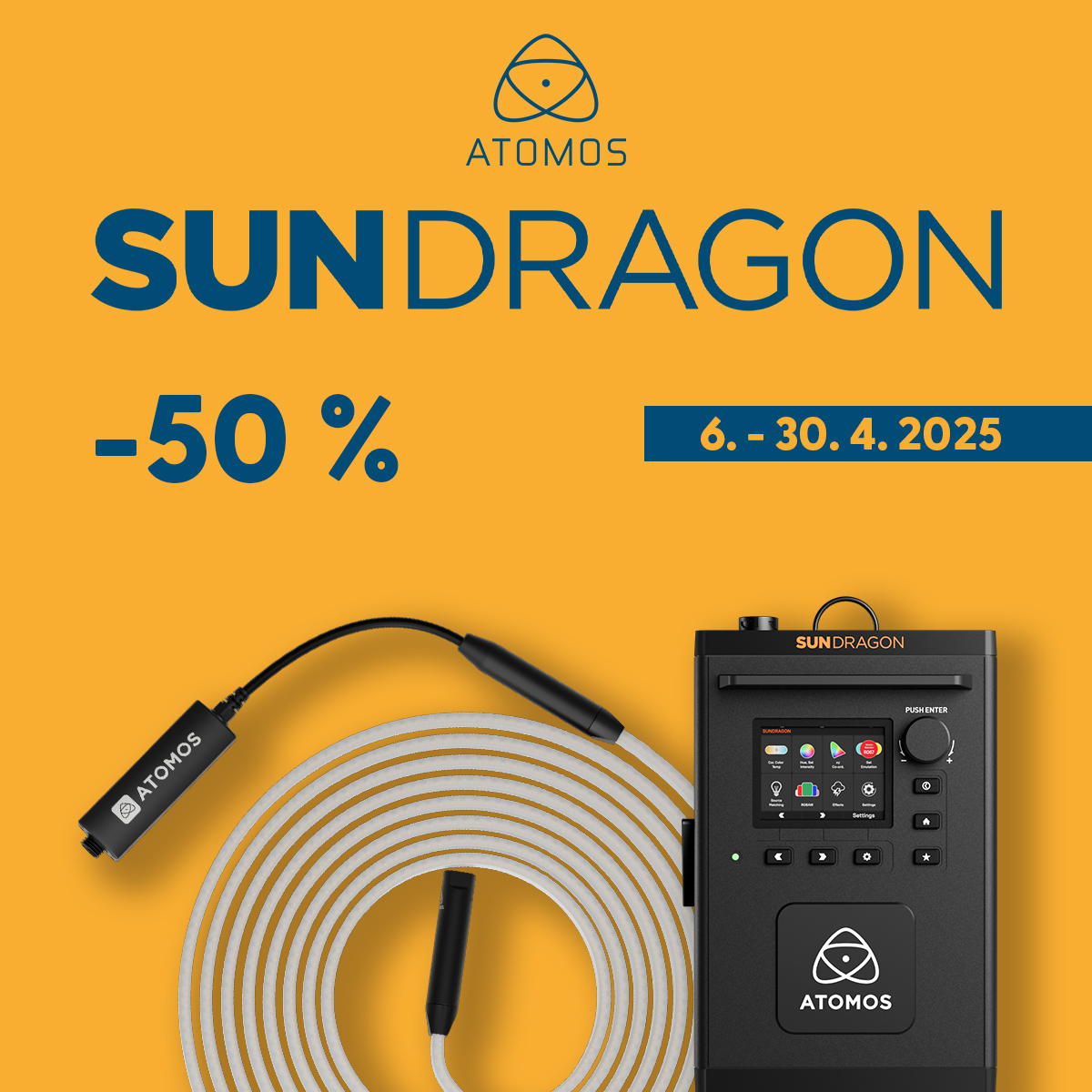 ¡Tenemos una fantástica promoción conAtomos para ti! ¡Del 6 al 30 de abril puedes conseguir su tirade luz LEDprofesionalSUN DRAGON con un 50 % de descuento! Esta oferta exclusiva es válida para ambos modelos: con y sin difusor. ¡No te pierdas esta oportunidad única y aprovecha el descuento hoy mismo!