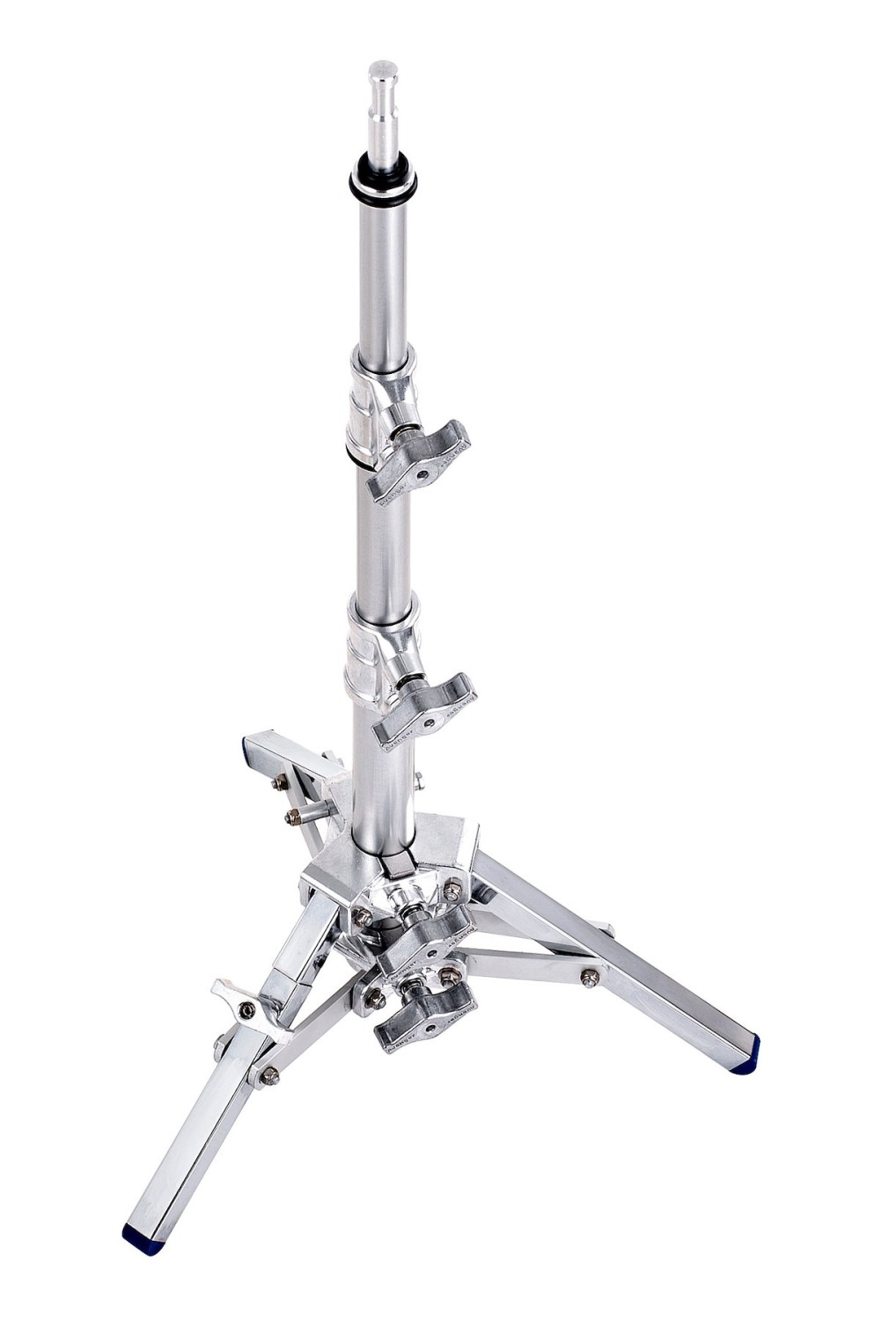 El Avenger A0010 Baby Stand 10 es un trípode profesional diseñado para sostener de forma fiable luces y accesorios en espacios reducidos o en instalaciones bajas. El trípode está equipado con patas de acero y bases de aluminio, lo que lo hace resistente y ligero a la vez. Sus patas de tres secciones permiten ajustar la altura de 52 cm a 100 cm, y la pata niveladora incluida garantiza la estabilidad en superficies irregulares. El Baby Stand 10 está equipado con un adaptador superior de 5/8" (16 mm) y soporta una carga máxima de 15 kg, lo que lo hace ideal para montar luces, pequeños reflectores u otros accesorios de estudio. Tiene un acabado plateado y combina practicidad, resistencia y portabilidad para sesiones fotográficas tanto en estudio como en exteriores.