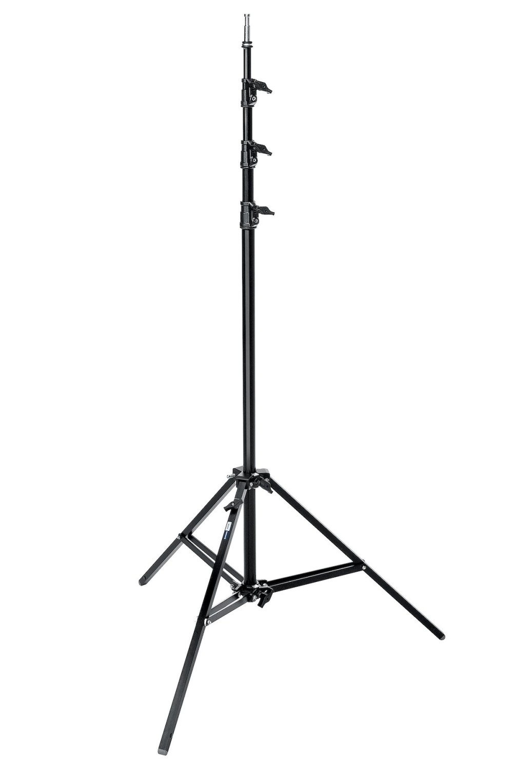 El trípode es capaz de soportar equipos de hasta 10 kg y es adecuado para una amplia gama de equipos de iluminación profesionales y accesorios. Incluye una pata niveladora que permite una instalación estable en superficies irregulares y está equipado con un adaptador superior estándar de 5/8" (16 mm) para una amplia compatibilidad. Las secciones con amortiguación neumática ayudan a proteger el equipo al ajustar la altura, mientras que el amplio diámetro de la base de 114 cm y las patas de sección cuadrada proporcionan una excelente estabilidad en condiciones exigentes.