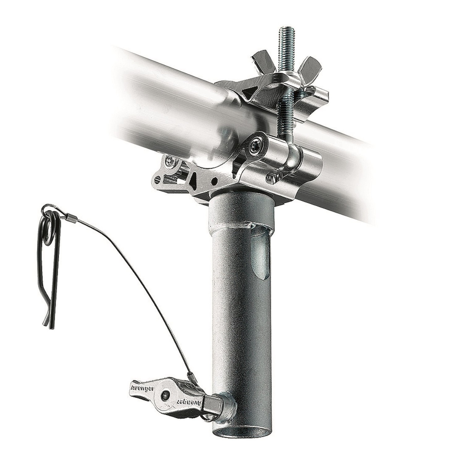 El acoplador Avenger C465-1 LP Eye Coupler con casquillo de 28 mm es una abrazadera de aluminio resistente diseñada para aplicaciones de montaje profesionales. Gracias a su receptor de 1 1/8" (28 mm) y a su elevada capacidad de carga, garantiza una fijación segura y fiable a vigas, tubos redondos y rejillas.