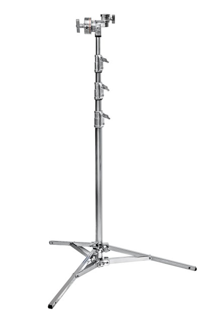 El Avenger A3042CS Overhead Stand 42 es un trípode profesional de cuatro secciones diseñado para aplicaciones exigentes en fotografía, cine y estudio. Este trípode está fabricado en acero cromado resistente y combina solidez, estabilidad y versatilidad. Está equipado con tres secciones extensibles, un cabezal de doble función con un mango de 4 1/2" y un receptor de 28 mm (1 1/8") de diámetro, lo que lo hace ideal para montar bastidores aéreos, bastidores plegables u otros equipos.