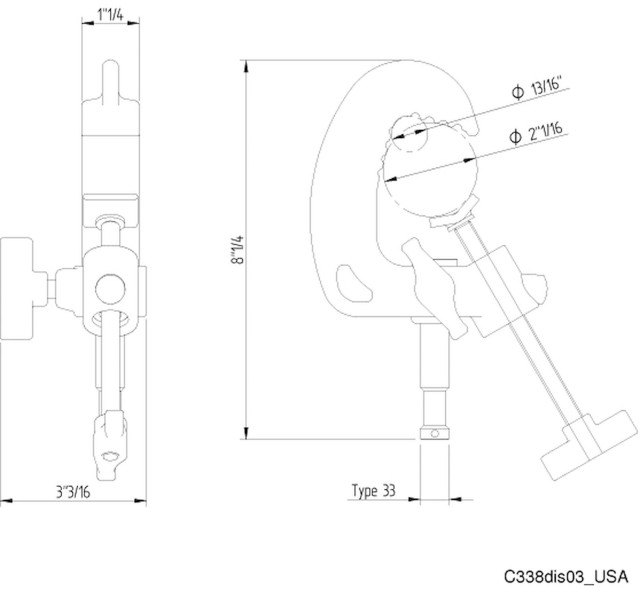 El mango en forma de T permite un montaje rápido sin herramientas, mientras que el perno integrado de 16 mm (5/8") garantiza la compatibilidad con los equipos de iluminación estándar. Para mayor seguridad, la abrazadera está equipada con un orificio especial para fijar cables de seguridad de acero flexibles, lo que ayuda a cumplir los requisitos profesionales de montaje y seguridad. Con un rango de sujeción de 20–52 mm y una capacidad de carga de hasta 50 kg, la C338 es una opción fiable y eficaz para entornos de producción exigentes.