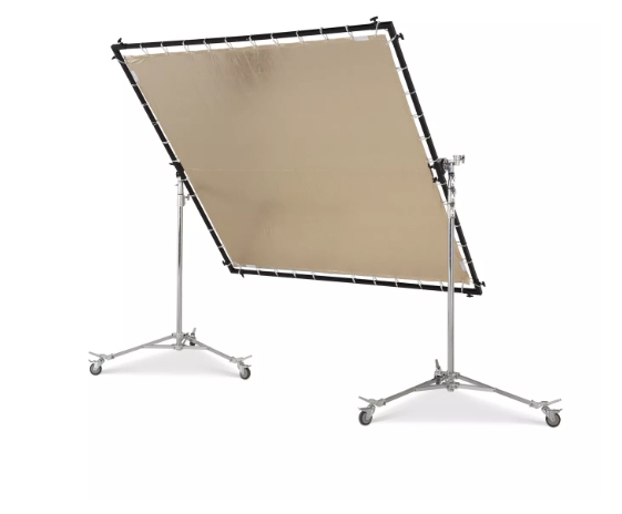 Avenger I915SUS Sunfire/Silver 8' × 8' (244 × 244 cm) Butterfly Fabric es un tejido reflectante reversible con un lado plateado y otro Sunfire (dorado), que permite crear efectos de luz versátiles para fotografía y filmación.