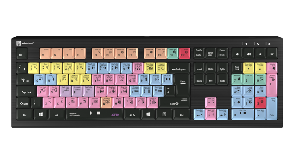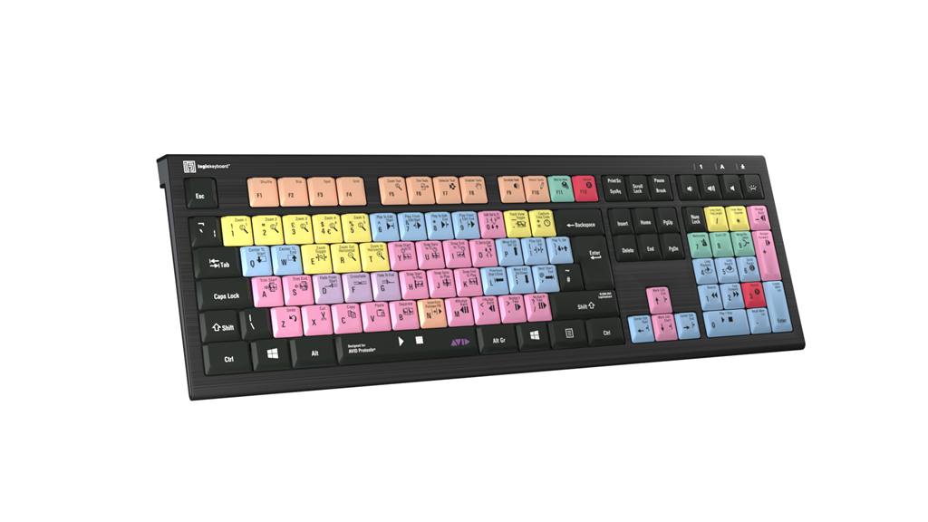 El teclado dedicado Pro Tools Logickeyboard también incluye todas las letras, números y símbolos habituales que se encuentran en un teclado estándar, por lo que puede utilizarse fácilmente como sustituto de este. El teclado se conecta fácilmente y no requiere instalación de software.