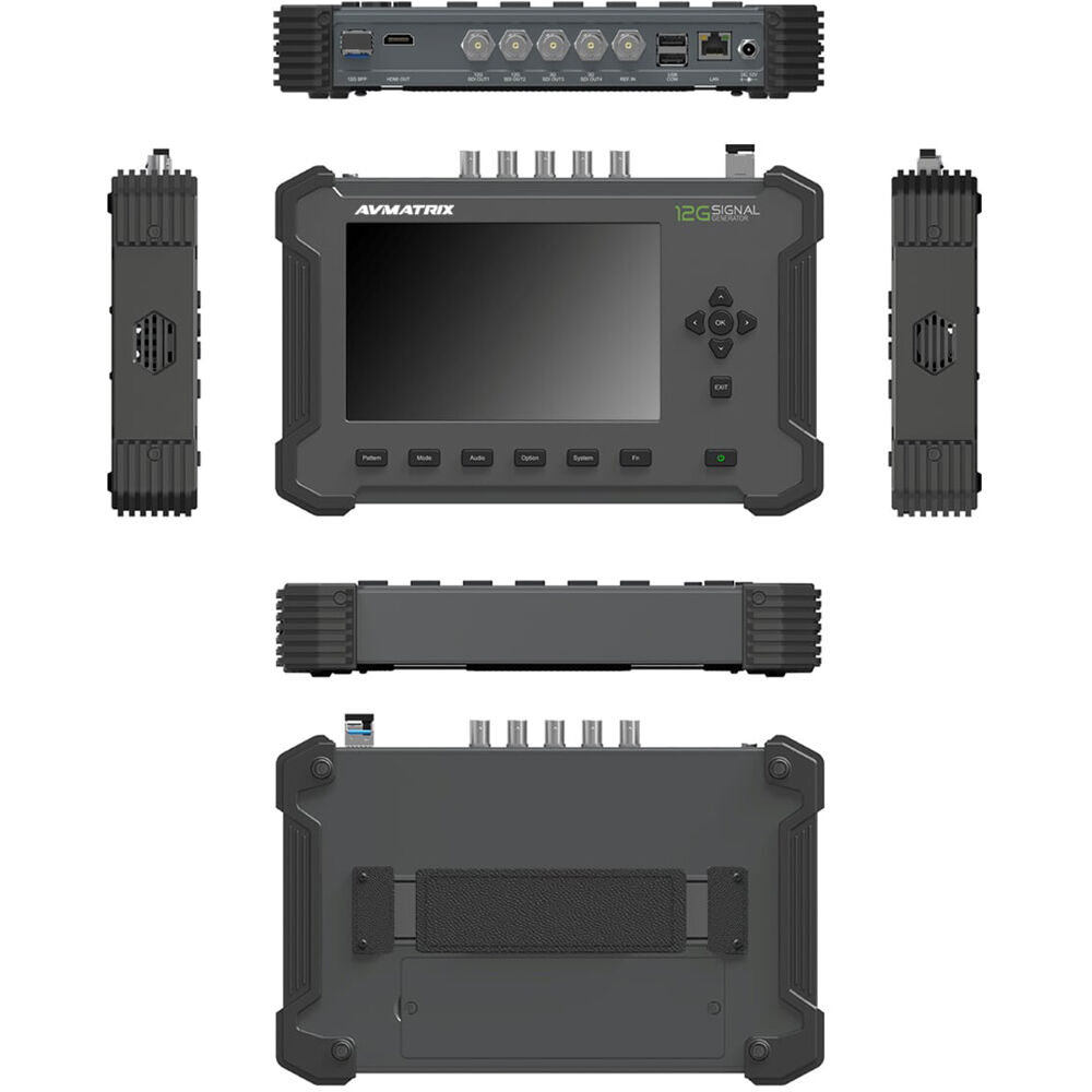 El generador permite elegir entre una serie de patrones predefinidos o crear imágenes personalizadas basadas en los espacios de color RGB o YCbCr. Está equipado con una entrada de referencia y una salida HDMI / cuatro salidas SDI con soporte para resoluciones de hasta DCI 4K60. El puerto LAN permite conectarse a un ordenador y controlar el generador mediante un software para Windows, que se puede descargar gratuitamente desde la página web de AVMATRIX. A los dos puertos USB se pueden conectar dispositivos externos, como una memoria USB, un teclado o un ratón. Se pueden importar más patrones a través de memorias USB. También dispone de una ranura SFP para la instalación de un módulo SFP opcional.