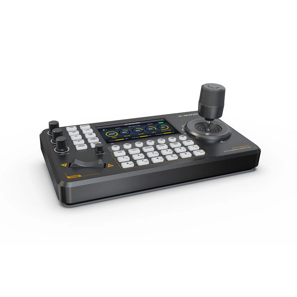 El AVMatrix PKC3500-NDI es una versión mejorada del popular controlador con joystick PKC3500, diseñado específicamente para flujos de trabajo PTZ basados en NDI. Su nítida pantalla táctil de 5 pulgadas ahora decodifica y muestra hasta cuatro flujos NDI en tiempo real, lo que le proporciona una verdadera retroalimentación visual sin necesidad de un monitor externo. El preciso joystick 4D, la barra en T y los botones táctiles garantizan un control fluido del giro, la inclinación, el zoom y el enfoque, mientras que el reconocimiento y el control completos de NDI complementan los protocolos tradicionales VISCA, VISCA-over-IP, Pelco-P/D y ONVIF.