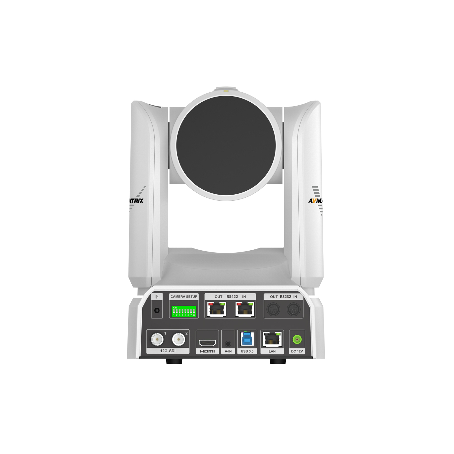 Cámara PTZ AVMatrix EAGLE P20-12G-NDI, color blanco: resolución 4K UHD, zoom óptico de 20× y compatibilidad versátil con NDI|HX3 para retransmisiones en directo, transmisiones y producción de vídeo profesionales.
