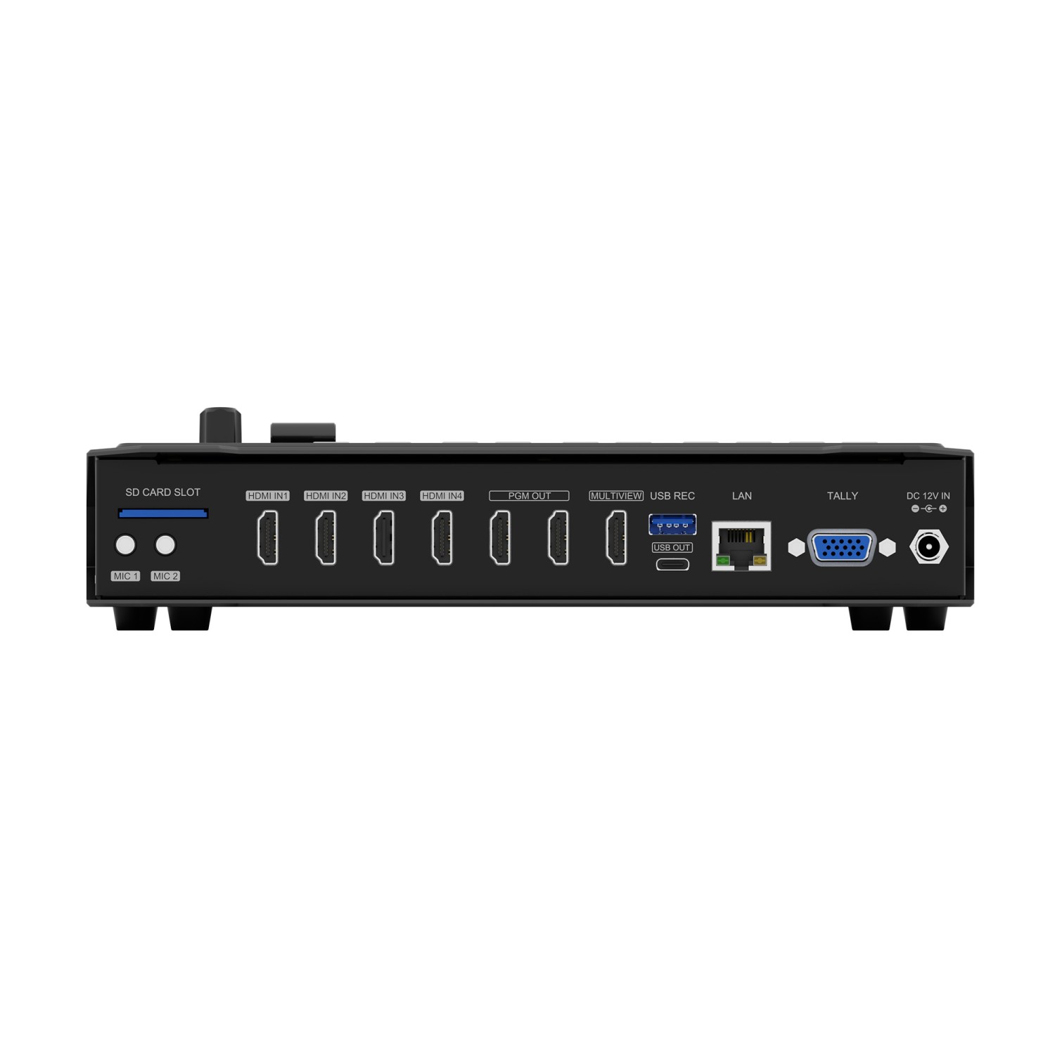 Presentamos los CONMUTADORES DE VÍDEO SHARK SERIES 4-CH SDI/HDMI, que representan la vanguardia de la innovación en el mundo de la producción de vídeo. Este conmutador de última generación, diseñado para mejorar su experiencia multimedia, cuenta con una pantalla LCD IPS FHD de 10,1 pulgadas que ofrece una imagen nítida como el cristal. Con 2 entradas HDMI y 2 entradas 3G-SDI que admiten detección automática, y opciones de salida versátiles que incluyen 2 salidas HDMI PGM, 1 salida HDMI multiview y 1 salida USB tipo C, la serie SHARK garantiza una conectividad sin problemas. Entre sus funciones avanzadas se incluyen la transmisión RTMP/SRT, la grabación en disco USB/tarjeta SD y una salida AUX configurable. El conmutador admite diversos efectos de transición, como T-bar/Auto/Cut, junto con los efectos WIPE, MIX y DIP. La inclusión de un mezclador de audio, opciones de clave previa, clave posterior, logotipo superpuesto y una biblioteca multimedia con plantillas personalizables lo convierten en una herramienta indispensable para la producción de vídeo profesional. Gracias a otras funciones, como la importación/exportación de configuraciones personalizadas, FTB/MUTE/STILL/GPIO para tally, la SERIE SHARK redefine la versatilidad y el rendimiento en el ámbito de los conmutadores de vídeo.