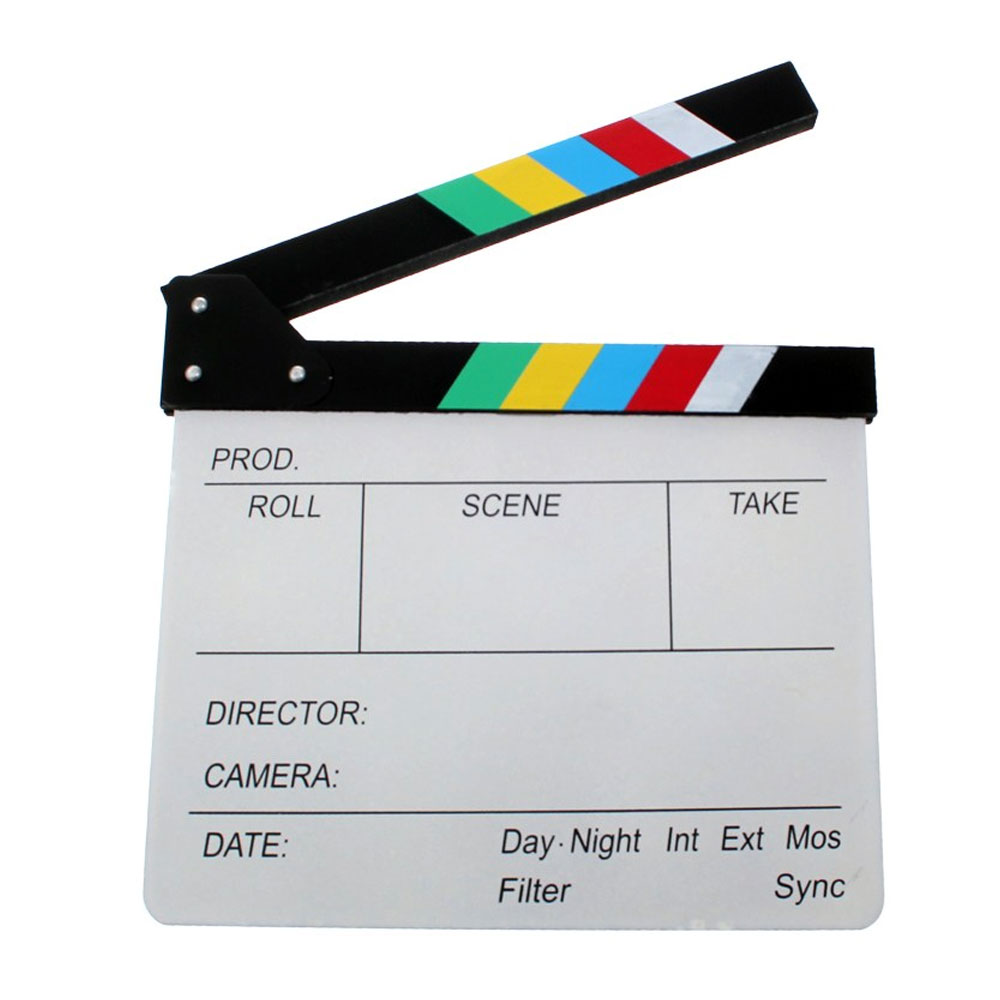 ¡Luces, cámara, acción! La claqueta se utiliza en la edición, la producción de vídeo, la fotografía y muchos otros ámbitos en los que es necesario marcar de forma visible la escena que se está grabando o sincronizar las pistas de audio basándose en el característico chasquido. Apta para escribir con tiza.