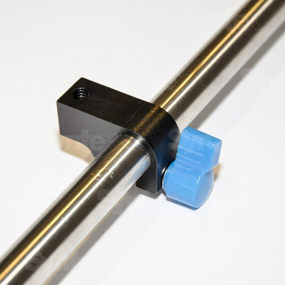 Adaptador para el soporte de la barra con rosca de 1/4". Permite fijar al soporte de la barra diversos accesorios con rosca de 1/4". Se utiliza en barras de 15 mm de diámetro.