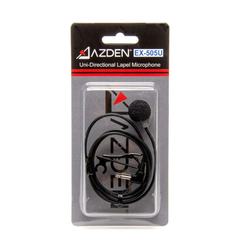 El Azden EX-505U es un micrófono de solapa con patrón direccional y conector jack de 3,5 mm, adecuado para el transmisor Azden VM-PRO , que forma parte del kit inalámbrico Azden WLX-PRO o Azden WLX-PRO+i.