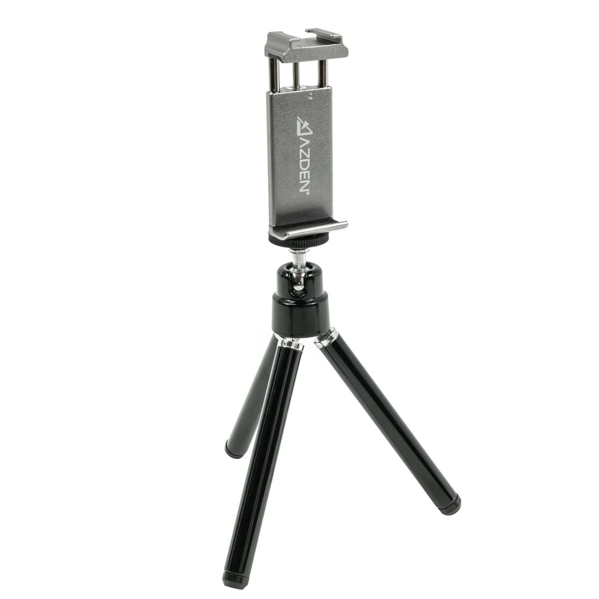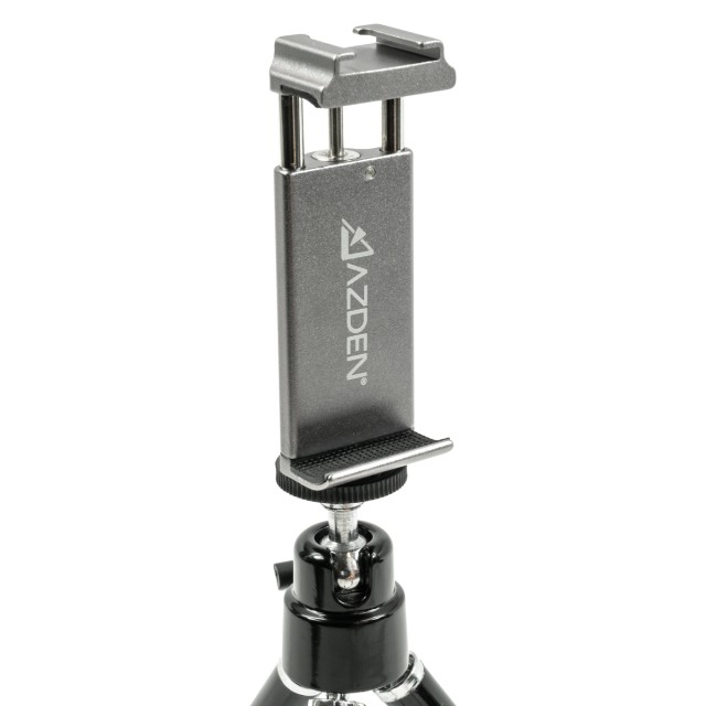El Azden MVT-1 es un práctico trípode y soporte para cámaras móviles que permite conectar un micrófono externo o un receptor inalámbrico. Una solución imprescindible para vlogueros móviles y streamers en directo.