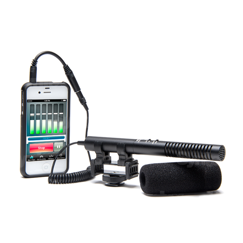 Micrófono de cañón con patrón de dirección conmutable para cámaras compactas, DSLR, DSLM, teléfonos y tabletas (con adaptador TRRS incluido).