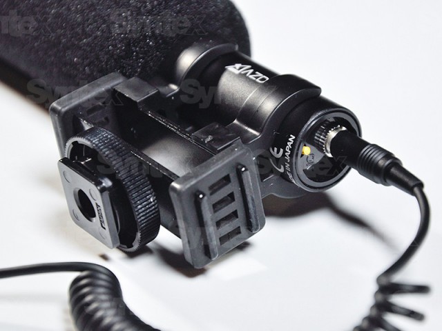 El micrófono Azden SGM-DSLR funciona con una pila alcalina LR-44 y el paquete incluye un soporte amortiguado para zapata, un protector contra el viento de espuma y un cable de conexión de 3,5 mm.
