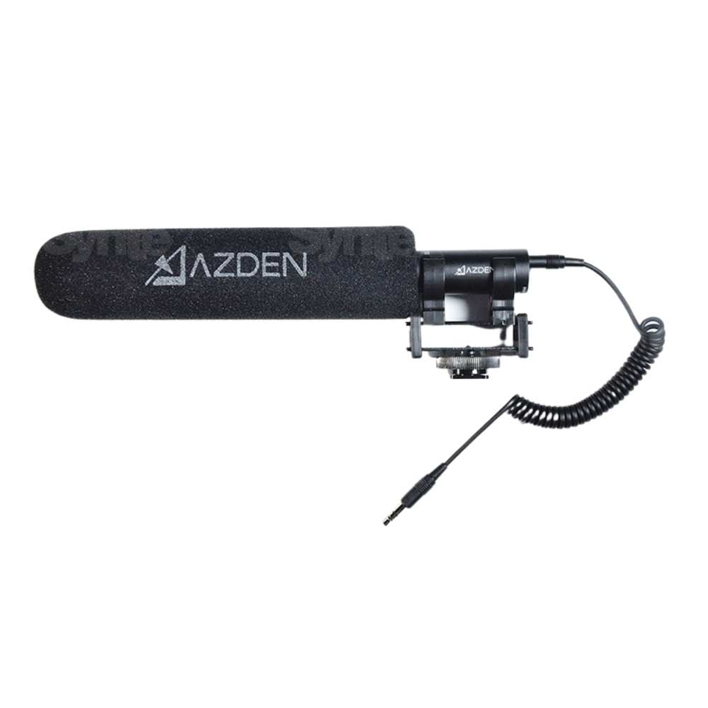 El micrófono Azden SGM-DSLR funciona con una pila alcalina LR-44 y el paquete incluye un soporte amortiguado para zapata, un protector contra el viento de espuma y un cable de conexión de 3,5 mm.