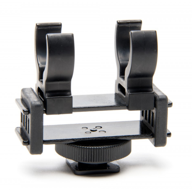 El soporte amortiguado para micrófonos Azden SMH-2 está equipado con una base estándar para su montaje directo en las zapatas de flash de las cámaras DSLR/DSLM y es compatible con micrófonos de 21-22 mm de diámetro, como por ejemplo los modelos Azden SGM-1X, SGM-250CX, SGM-250, SGM-250P, SGM-PII, SGM-PDII y micrófonos de otros fabricantes, incluidos los Rode NTG-1/NTG-2/NTG-4/NTG-4+ (22 mm), Audio-Technica AT 897 (21 mm) y otros. Las vibraciones de manejo procedentes de la cámara o de las varillas de los micrófonos se aíslan mediante un par de amortiguadores de goma.