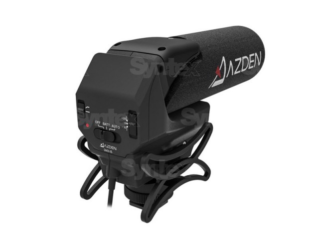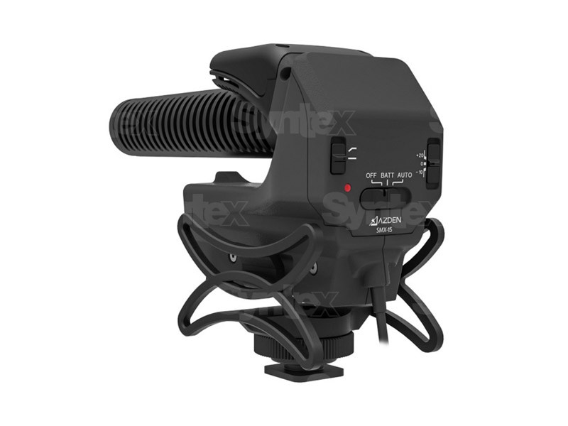 Las opciones de audio de las cámaras DSLR son muy limitadas, si es que hay alguna. Los preamplificadores de micrófono de las cámaras DSLR suelen ser de baja calidad y producen un ruido perceptible a niveles de ganancia elevados. Por eso, el fabricante Azden ha integrado en el micrófono SMX-30 un conmutador de ganancia de +20 dB: el resultado es una señal potente y clara que no es necesario amplificar demasiado en la cámara. La protección contra niveles muy altos de sonido grabado (conciertos, eventos deportivos, etc.) la garantiza un atenuador conmutable de -10 dB.