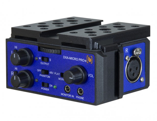 El Beachtek DXA-MICRO-PRO PLUS es un adaptador de audio activo diseñado para proporcionar una conectividad versátil y una configuración sencilla a los cámaras y operadores que utilizan cámaras réflex digitales o videocámaras en producciones televisivas y cinematográficas. Permite conectar simultáneamente micrófonos externos y auriculares para simplificar la conexión con la cámara. La placa de montaje extraíble incluida proporciona una fijación estable y sencilla de los accesorios. La batería interna LiPo mantiene el DXA-MICRO-PRO PLUS en funcionamiento hasta diez horas; la recarga y la alimentación externa son posibles mediante una conexión micro-USB.