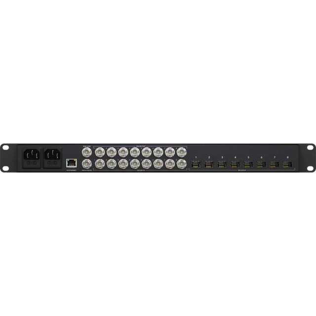 El Blackmagic Design 2110 IP Converter 8x12G SFP permite convertir sin problemas 3 dispositivos independientes 3G-SDI a sistemas de vídeo IP SMPTE 2110. Este convertidor está equipado con una conexión Ethernet de 10G y admite 3 canales de vídeo de entrada y 3 de salida simultáneamente. Cada canal cuenta con entradas y salidas SDI independientes, lo que permite conectar hasta 6 dispositivos SDI diferentes. Gracias a las salidas en bucle para cada entrada 3G-SDI, se integra fácilmente en las configuraciones SDI existentes. Está equipado con una salida de referencia sincronizada con el reloj PTP 2110 e incluye un panel frontal con pantalla LCD a color para monitorización, menús y diagnóstico.