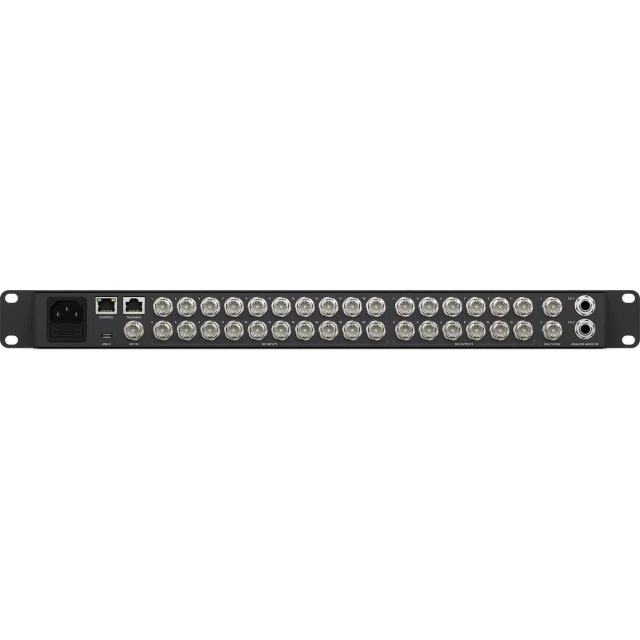 La función multiview integrada permite a los usuarios ver varias fuentes de vídeo en un solo monitor. El modelo 1 M/E incluye una, mientras que el modelo 2 M/E cuenta con dos salidas multiview independientes. Todas las entradas SDI externas y las fuentes de vídeo internas se pueden dirigir a cualquier vista. La vista multiview es totalmente personalizable y se puede configurar de forma independiente para mostrar 4, 7, 10, 13 o 16 vistas simultáneas. Los usuarios pueden añadir a cada vista, como elemento superpuesto, un marco que muestra el estado de la señal, además de la identificación de la fuente y los medidores VU.