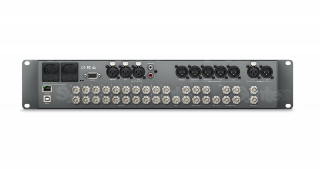 Además de la nueva tecnología 12G-SDI, la mesa de regidor ATEM 4 M/E Broadcast Studio 4K ofrece todas las demás interfaces necesarias. Cada una de las entradas cambia automáticamente entre los estándares HD y Ultra HD y admite la resincronización de la señal. Tampoco faltan dos entradas de audio balanceadas con conectores XLR para conectar una mesa de mezclas u otro equipo de sonido. El dispositivo también está equipado con una salida principal Ultra HD, una salida HD simultánea y seis salidas auxiliares para visualizar las señales de entrada en pantallas de gran formato y monitores de control, o para grabarlas. Dos salidas multiview con soporte Ultra HD permiten monitorizar la señal entrante de las cámaras, la salida principal, etc.