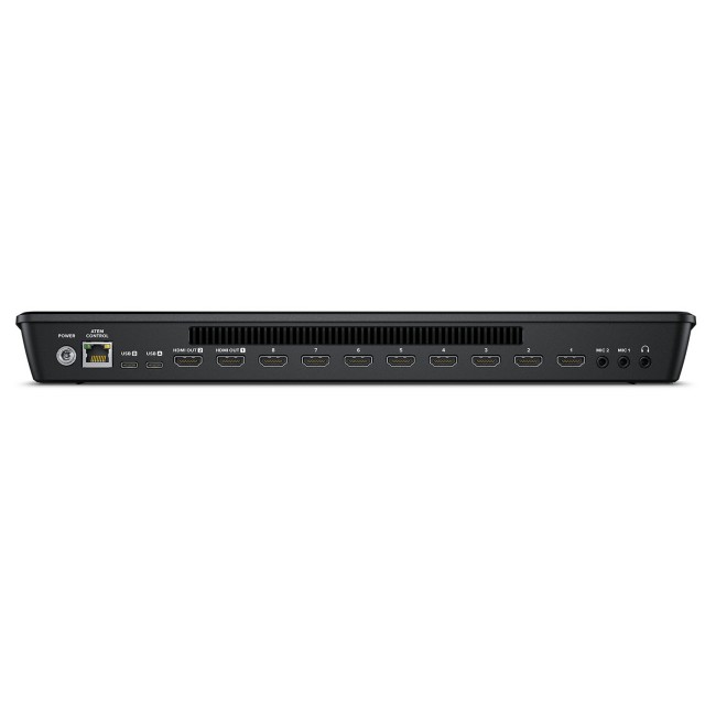 Cada una de las entradas HDMI está totalmente sincronizada y convierte automáticamente las señales 1080p, 1080i y 720p a la resolución actual de la mesa de mezcla. En el modo de trabajo Program/Preview, la salida HDMI puede mostrar una vista previa de la salida de las cámaras o del programa que se está creando; los modelos ATEM Mini Pro y Extreme ofrecen además una salida multivista.