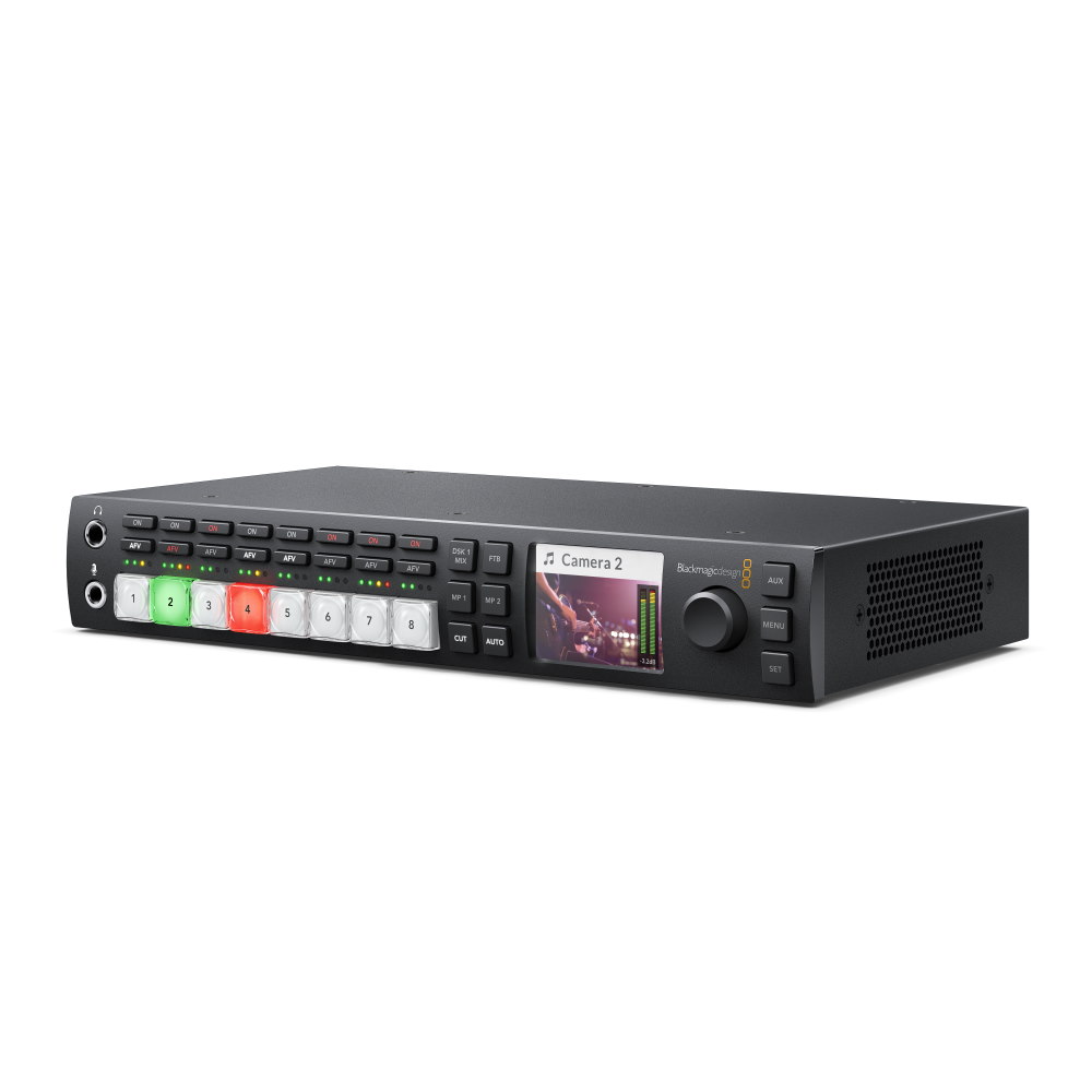El ATEM Television Studio HD de Blackmagic Design es una nueva mesa de regiduría para la gestión de retransmisiones en directo con 8 entradas, función multivisión, entradas de audio analógico, salidas Aux y de programa, funciones de comunicación integradas, dos reproductores multimedia con memoria flash, transiciones creativas, efectos DVE y otras funciones. ¡El sucesor del popular producto ATEM Television Studio!