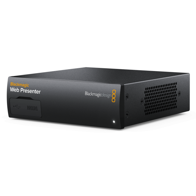 Blackmagic Web Presenter ofrece una forma rápida y sencilla de transmitir vídeo con alta calidad de imagen. El dispositivo sustituye a los costosos y complejos codificadores y permite a los usuarios utilizar cámaras profesionales, así como su software o servicios de streaming favoritos, para la transmisión de vídeo. Y dado que el Blackmagic Web Presenter se presenta ante los ordenadores como una cámara web convencional, la salida se puede procesar mediante cualquier aplicación compatible con cámaras USB, sin necesidad de instalar controladores adicionales.