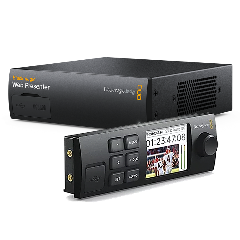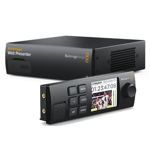 Blackmagic Web Presenter ofrece una forma rápida y sencilla de transmitir vídeo con alta calidad de imagen. El dispositivo sustituye a los costosos y complejos codificadores y permite a los usuarios utilizar cámaras profesionales, así como su software o servicios de streaming favoritos, para la transmisión de vídeo. Y dado que el Blackmagic Web Presenter se presenta ante los ordenadores como una cámara web convencional, la salida se puede procesar mediante cualquier aplicación compatible con cámaras USB, sin necesidad de instalar controladores adicionales.