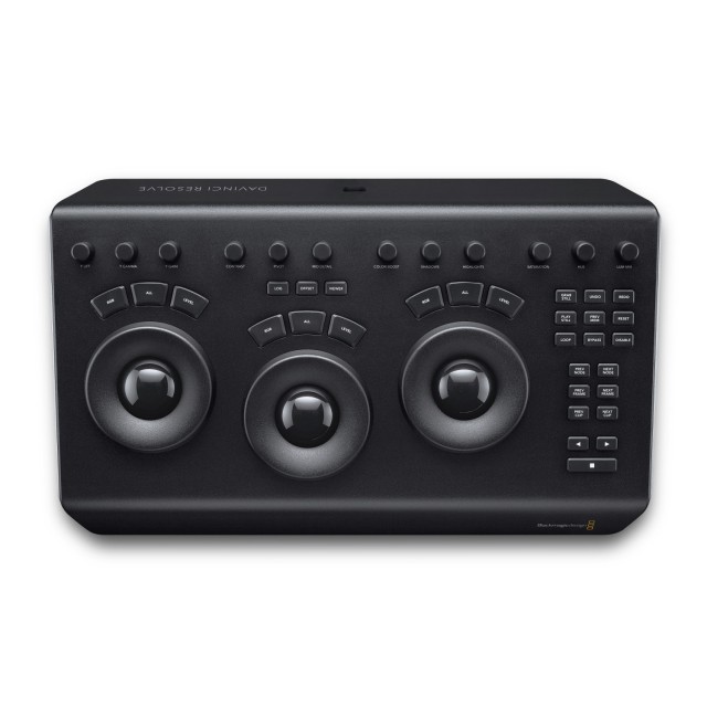 El panel DaVinci Resolve Advanced Panel, diseñado en colaboración con coloristas profesionales, permite un acceso rápido con un solo toque a prácticamente todos los parámetros del programa. El cuarto trackball controla el brillo y el balance de color de la imagen sin necesidad de cambiar la configuración del trackball.