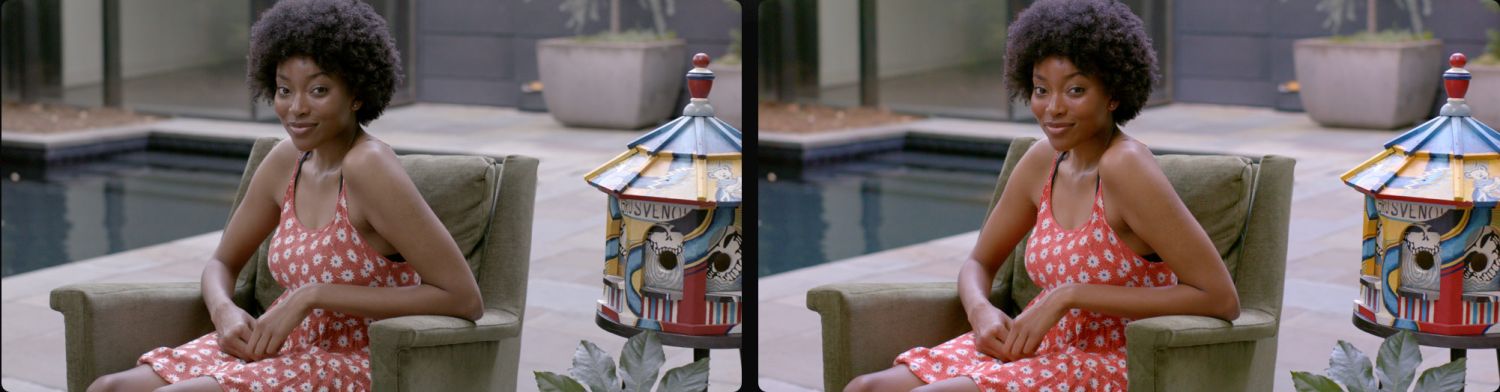 Al aumentar o reducir el detalle de los tonos medios, se modifica el contraste en los detalles periféricos de la imagen. El ajuste del detalle de los tonos medios cambia la percepción de nitidez y definición. Se puede utilizar para resaltar la barba incipiente en el rostro de un actor, con el fin de que la escena parezca más nítida, o para desenfocar ligeramente la piel en trabajos de embellecimiento.