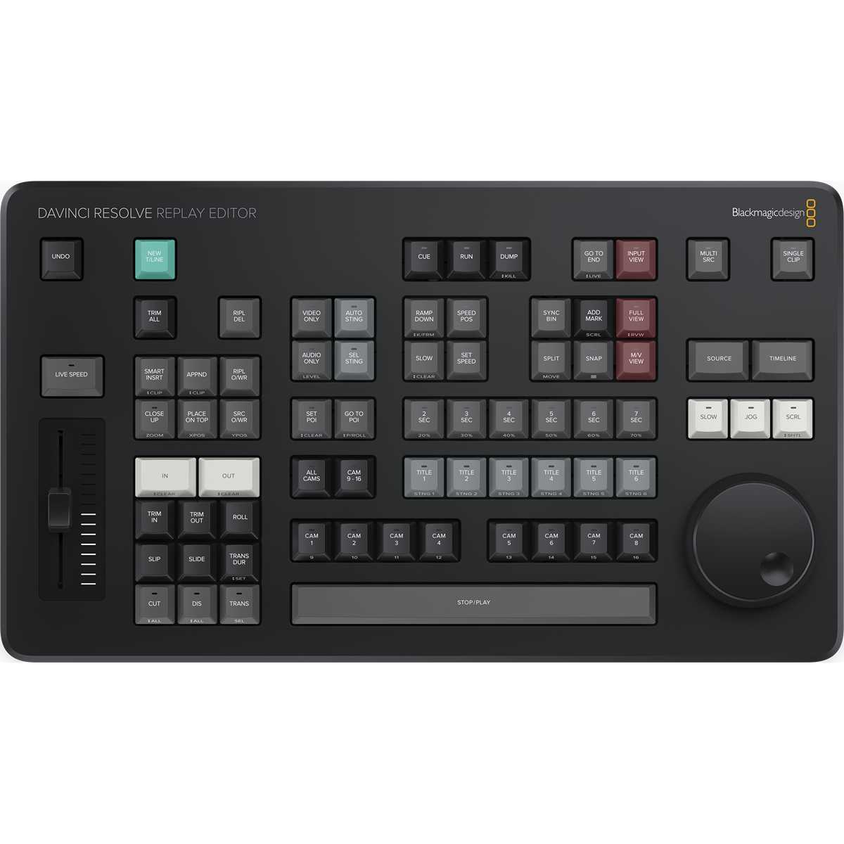 Panel de edición diseñado específicamente para la edición multicámara de reportajes de noticias y retransmisiones deportivas en directo. ¡Incluye botones para seleccionar cámaras y editar con extrema rapidez! Conexión mediante Bluetooth o USB-C. Compatible con DaVinci Resolve 19+. A la venta a partir de mayo de 2024.