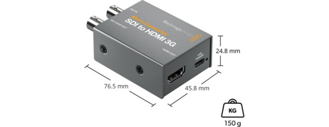 A diferencia de la gran mayoría de los convertidores compactos de la competencia, los modelos Blackmagic Micro Converter cuentan con un equipamiento de hardware y software de alta calidad, así como con una carcasa metálica muy resistente. Cada convertidor está equipado con conectores SDI y HDMI de gran calidad, así como con una interfaz USB-C para la alimentación y la configuración mediante aplicaciones para macOS y Windows, y también cuenta con indicadores LED de estado de alimentación y vídeo. En caso necesario, se puede adquirir un kit que incluye un adaptador de corriente universal de 100-240 V~ con cuatro adaptadores internacionales.