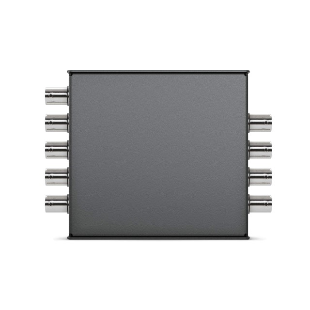 El Mini Converter SDI Distribution 4K distribuye la señal presente en la entrada SDI a 8 salidas SDI diferentes. Cambia automáticamente entre los formatos de vídeo SD, HD y Ultra HD.