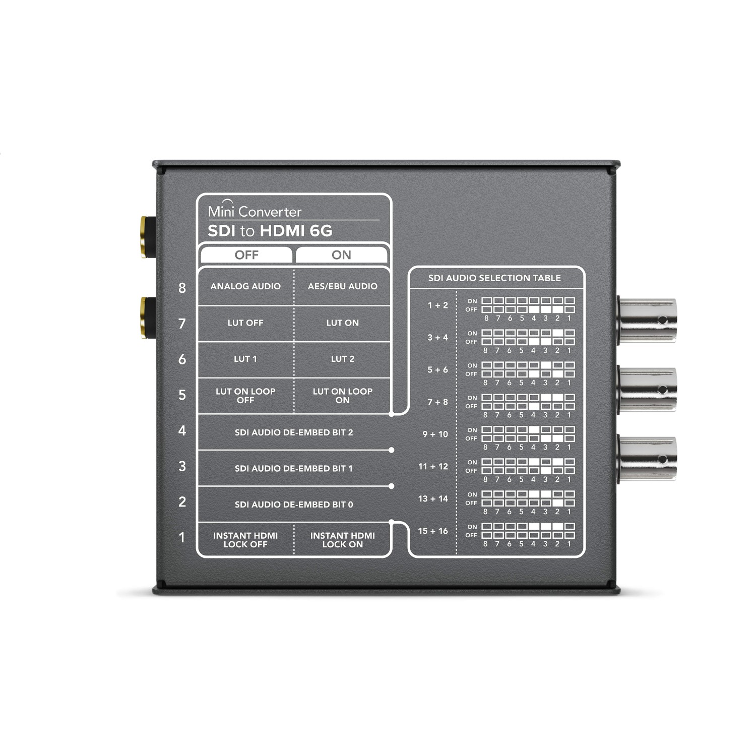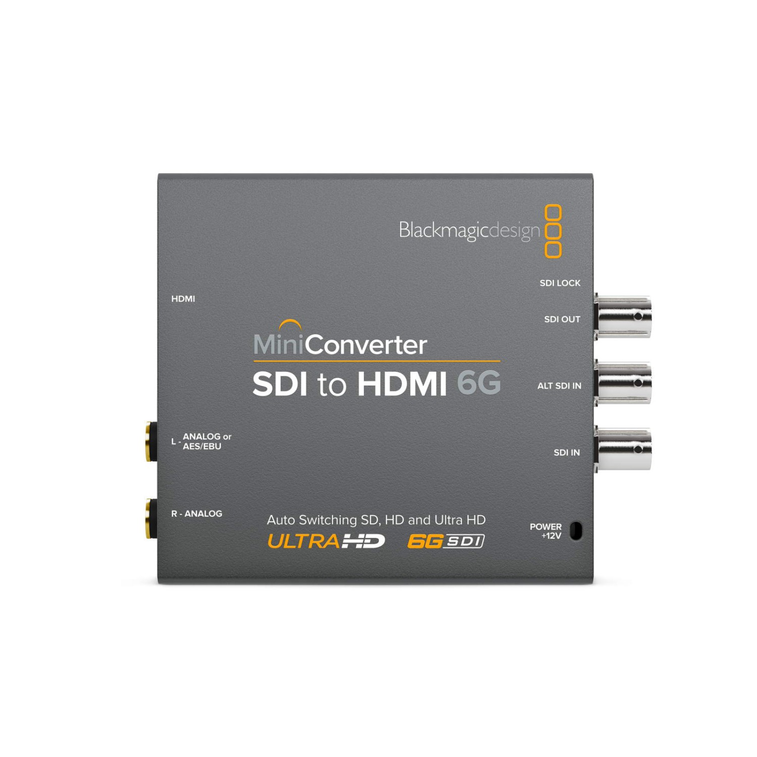 Los nuevos modelos 6G de la gama Mini Converter ofrecen, en comparación con los anteriores modelos 3G-SDI y 4K, nuevas funciones (por ejemplo, compatibilidad con los niveles A y B de 3G-SDI) y un precio más bajo. El modelo Mini Converter SDI to HDMI 6G convierte la interfaz SDI a HDMI, incluyendo compatibilidad con los estándares habituales SD, HD y Ultra HD (hasta 2160p30), así como la posibilidad de desincrustar el audio a HDMI, AES/EBU o salidas analógicas balanceadas. Tampoco falta la posibilidad de conversión automática a una resolución inferior, por ejemplo, para previsualizar una señal Ultra HD en monitores HDMI HD, compatibilidad con tablas 3D LUT para correcciones de color (los archivos son compatibles con DaVinci Resolve) y la función HDMI Instant Lock. La nueva arquitectura de los convertidores Mini Converter 6G también ofrece una mayor calidad de sonido.