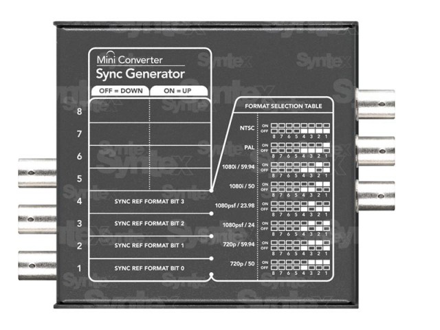 El generador de sincronización Mini Converter Sync Generator cuenta con seis salidas de referencia estabilizadas por cristal. Permite sincronizar fácilmente el equipo de vídeo de tu estudio mediante los estándares Tri-Sync (HD) o Blackburst (SD). ¡El dispositivo ideal para estudios pequeños o para trabajar sobre el terreno!