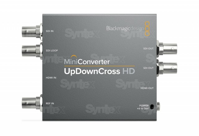 Conectar ordenadores con interfaz HDMI a equipos SDI profesionales es muy sencillo con el nuevo Blackmagic Mini Converter UpDownCross HD: los usuarios no tienen que cambiar la configuración de la tarjeta gráfica, el convertidor convierte automáticamente la salida HDMI del ordenador al estándar de transmisión seleccionado... El Mini Converter UpDownCross HD está equipado con una interfaz 3G-SDI, compatible con toda la tecnología SD y HD, y admite una resolución de 1080p60 y los estándares SDI Nivel A y B. El convertidor ofrece una entrada 3G-SDI (con salida SDI Loop), una entrada HDMI, un puerto de sincronización, dos salidas 3G-SDI y una salida HDMI. El convertidor ofrece resincronización en las entradas 3G-SDI y siempre se controla mediante la señal de sincronización conectada. Por supuesto, cuenta con un bajo jitter SDI y un procesamiento de señal de alta calidad durante la conversión. Por lo tanto, los usuarios pueden utilizar cables más largos sin perder la alta fiabilidad operativa. Además, el audio se retrasa automáticamente en función de la conversión que se esté realizando, por lo que siempre está perfectamente sincronizado con la señal de vídeo.