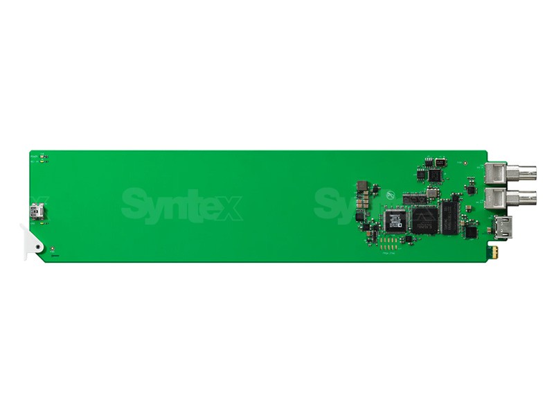 Convierte la señal SDI a salida HDMI, incluyendo el audio integrado. Permite utilizar televisores de pantalla grande y proyectores en lugar de monitores de visualización específicos. ¡Gracias a este módulo, podrás conectar equipos SDI a cualquiera de la amplia gama de dispositivos de visualización HDMI! Para su instalación en racks compatibles con el estándar OpenGear.