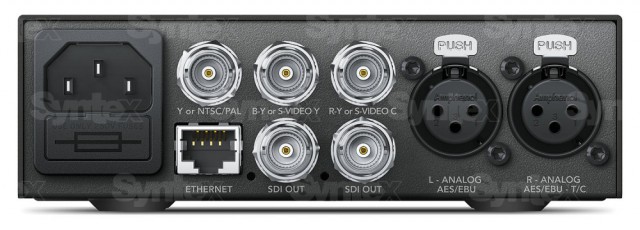 Los productos Teranex Mini están equipados además con conectores XLR estándar para líneas de audio balanceadas, una interfaz digital AES/EBU o para la conexión de fuentes de código de tiempo. Los usuarios pueden utilizar cableado de estudio estándar con un tipo de conector fiable que cuenta con un seguro contra la desconexión accidental del cable. Los circuitos de audio de los convertidores Teranex Mini se han rediseñado por completo para ofrecer un nivel de ruido extremadamente bajo (más de -115 dBFS) y la máxima calidad de sonido.