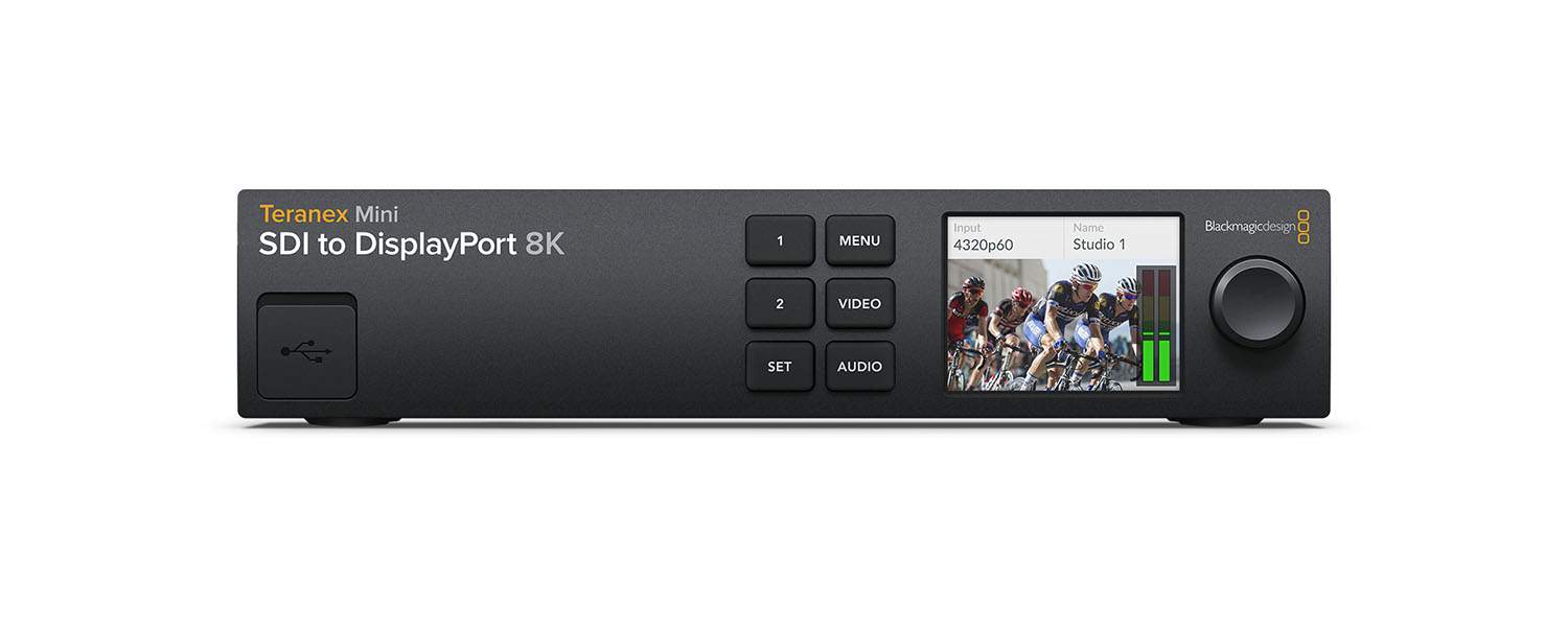 El Teranex Mini SDI to DisplayPort 8K HDR es una solución avanzada para la visualización de vídeo 8K mediante monitores de ordenador con interfaz DisplayPort, como el nuevo monitor Pro Display XDR. A diferencia de los convertidores habituales, este producto es capaz de utilizar sondas de calibración de otros fabricantes y también de mostrar la salida de funciones para la medición de la señal, incluyendo la forma de onda, el histograma o el vectorscopio. Se trata de una solución ideal para estudios de cine o centros de televisión que requieren soluciones profesionales, pero asequibles, para la visualización de vídeo. Otra ventaja es su elegante diseño, que incluye una pantalla LCD para la visualización de la señal y la configuración sencilla del dispositivo.